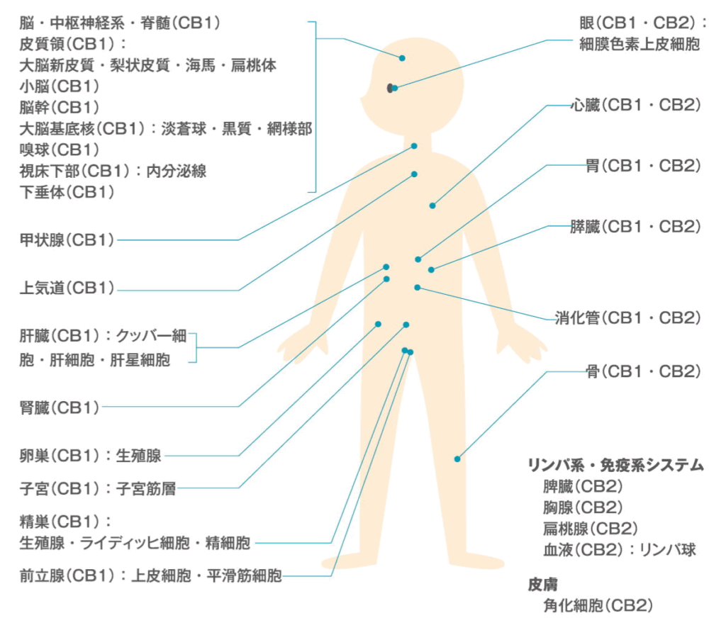 「カンナビノイド受容体」が分布して、調節システムを守っています。