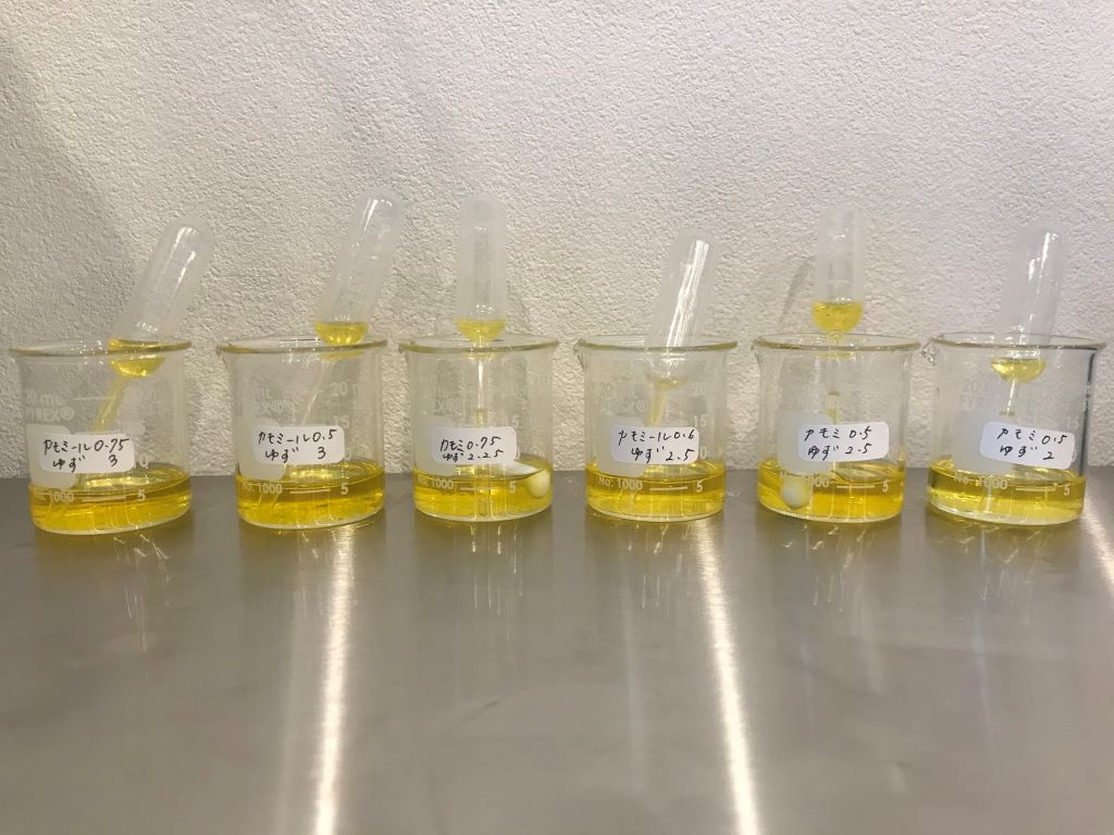 などなど、こんな風にスタッフ間で何度も試飲を重ね、0.01%までこだわって精油をブレンドしていきます。