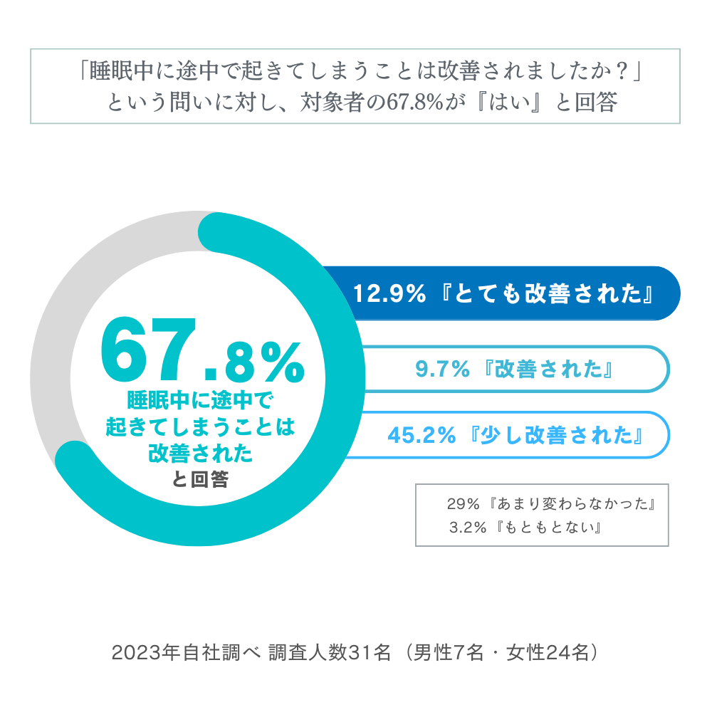 対象者のうち67.8%が『睡眠中に途中で起きてしまうことの改善』を実感