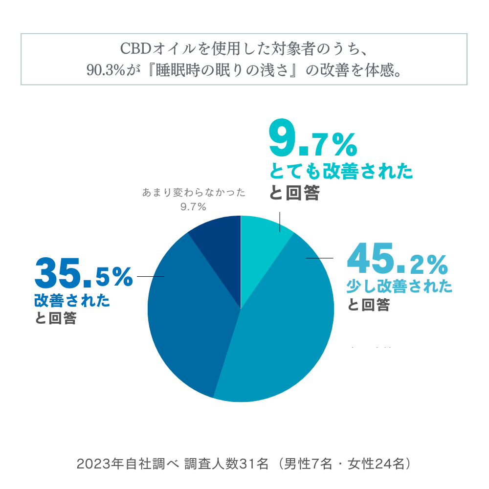 Bicle 10%CBDオイルを使用した対象者の93.5%が、CBDオイル使用期間中は不眠や睡眠の悩みが『改善された』と回答しました。