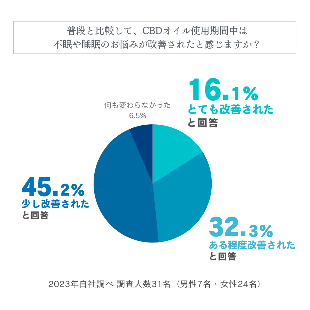 「普段と比較して、CBDオイル使用期間中は不眠や睡眠のお悩みが改善されたと感じますか?」という問いに対し、