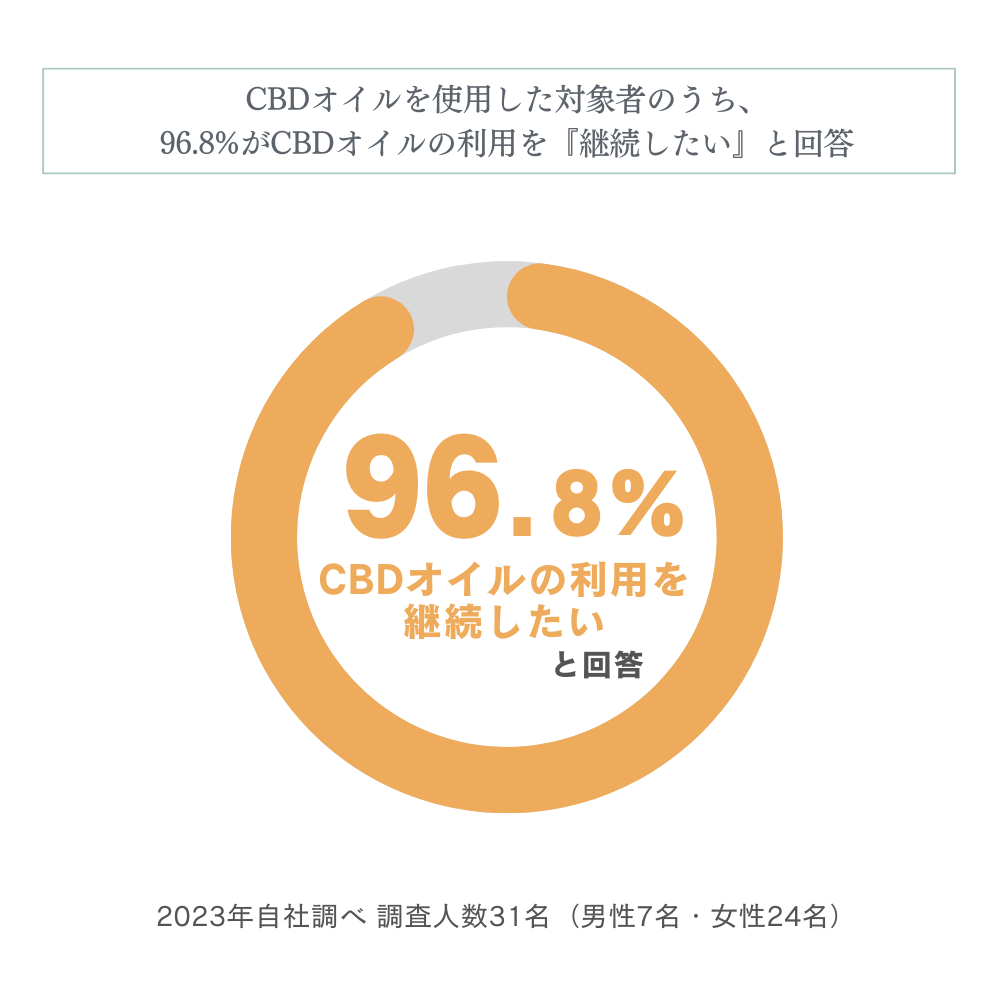 Bicle CBDオイルを使用した対象者のうち、96.8%がCBDオイルの利用を『継続したい』と回答