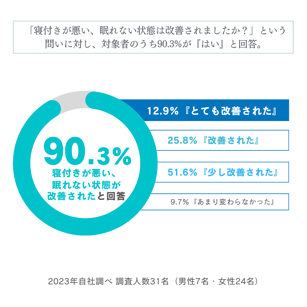 対象者のうち90.3%が『寝付きが悪い、眠れない状態が改善された』と回答