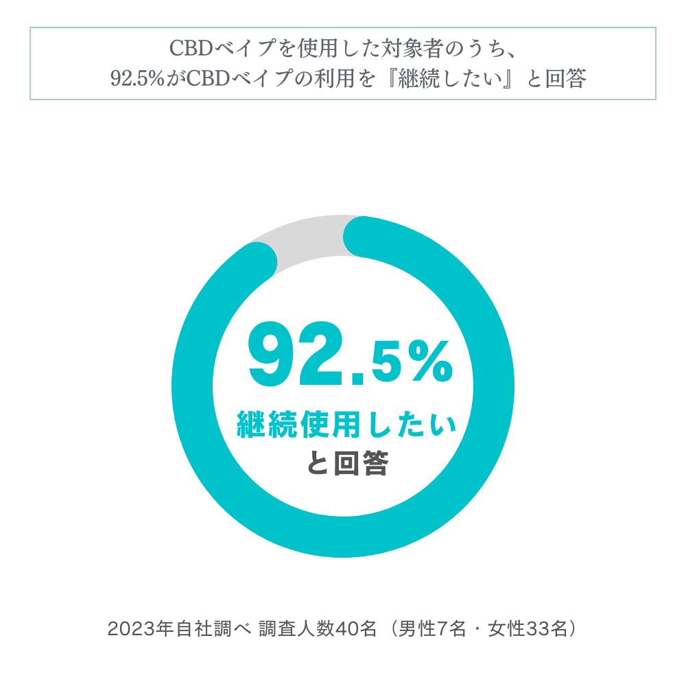 今回、アンケート調査の対象となった40名のうち、92.5%(37名)がBicle CBDベイプの利用を『継続したい』と回答しました。
