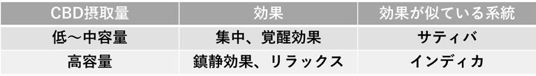 など、サティバに類似した効果を得たい場合は低用量、