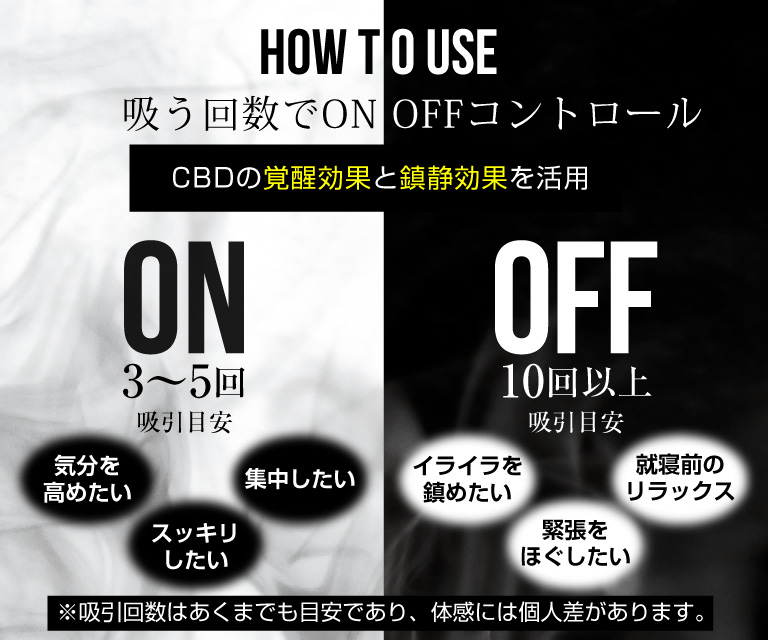 ・吸う回数の調整で覚醒効果と鎮静効果の使い分けができる