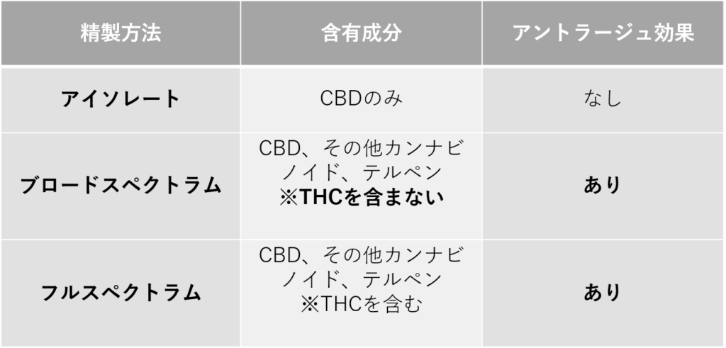 CBDのみを抽出した「アイソレート」の商品も存在します。