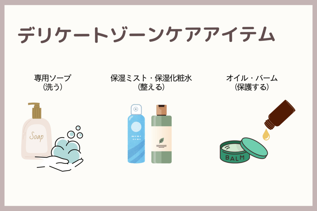 今は、デリケートゾーン専用のソープや保湿剤が多数市販されており、肌にやさしくケアができるアイテムを選ぶことができます。