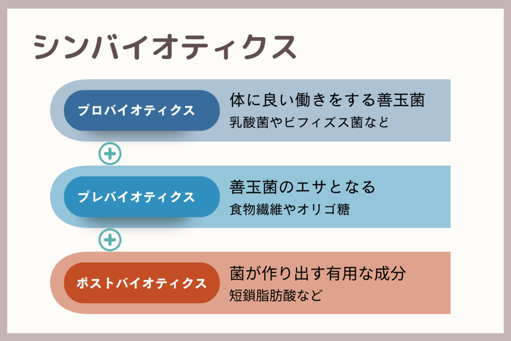 そこで注目されているのが、「シンバイオティクス」という新しいアプローチです。これは以下の3つを組み合わせた考え方です。