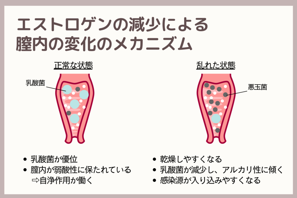 • 膣のバリア機能が低下し、感染源が入り込みやすくなる