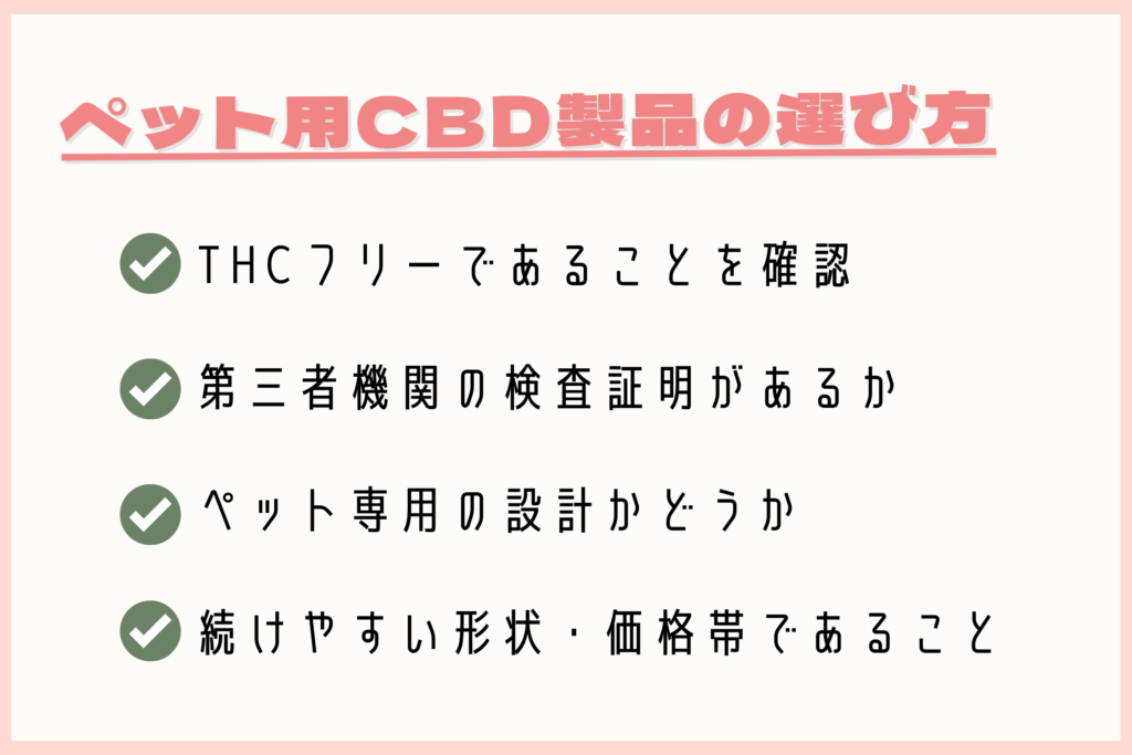 CBD製品を愛犬に与える際、どのような基準で選べば良いのでしょうか?以下のチェックポイントを参考にしてください。