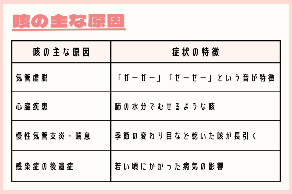 年齢を重ねたペットに咳の症状が現れる場合、いくつかの健康課題が考えられます。