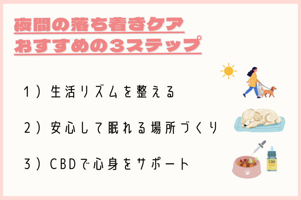 そして、注目を集めている「CBD(カンナビジオール)」という天然成分が、どのように愛犬の夜間の落ち着きに役立つのかもご紹介します。